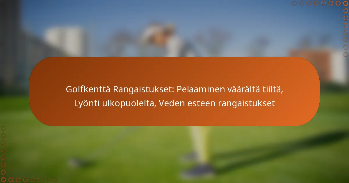 Golfkentän rangaistukset voivat merkittävästi vaikuttaa pelaajan tulokseen ja kokonaiskokemukseen, erityisesti kun kyseessä on pelaaminen väärästä tiistä, lyönti ulos kentältä tai vesihäiriöiden kohtaaminen. Näiden sääntöjen tunteminen on ratkaisevan tärkeää pelin eheyden ylläpitämiseksi, olitpa pelaamassa rentoutumismielessä tai kilpailullisessa ympäristössä. Näiden rikkomusten seurauksien ymmärtäminen auttaa sinua navigoimaan kentällä tehokkaammin ja parantamaan suoritustasi.