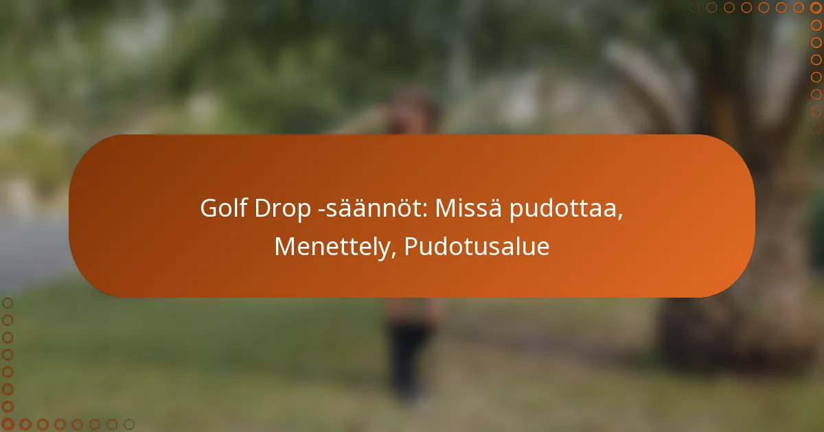Golfpallon pudotussäännöt määrittelevät oikeat menettelytavat pelaajille, kun heidän on pudotettava pallo erilaisten kenttäolosuhteiden vuoksi. Ymmärtäminen, mihin pallo tulee pudottaa, mukaan lukien määrätyt pudotusalueet ja yleiset pudotuspaikat, on olennaista reilun pelin ylläpitämiseksi. Oikean pudotusmenettelyn noudattaminen auttaa pelaajia välttämään rangaistuksia ja varmistaa pelin johdonmukaisuuden.