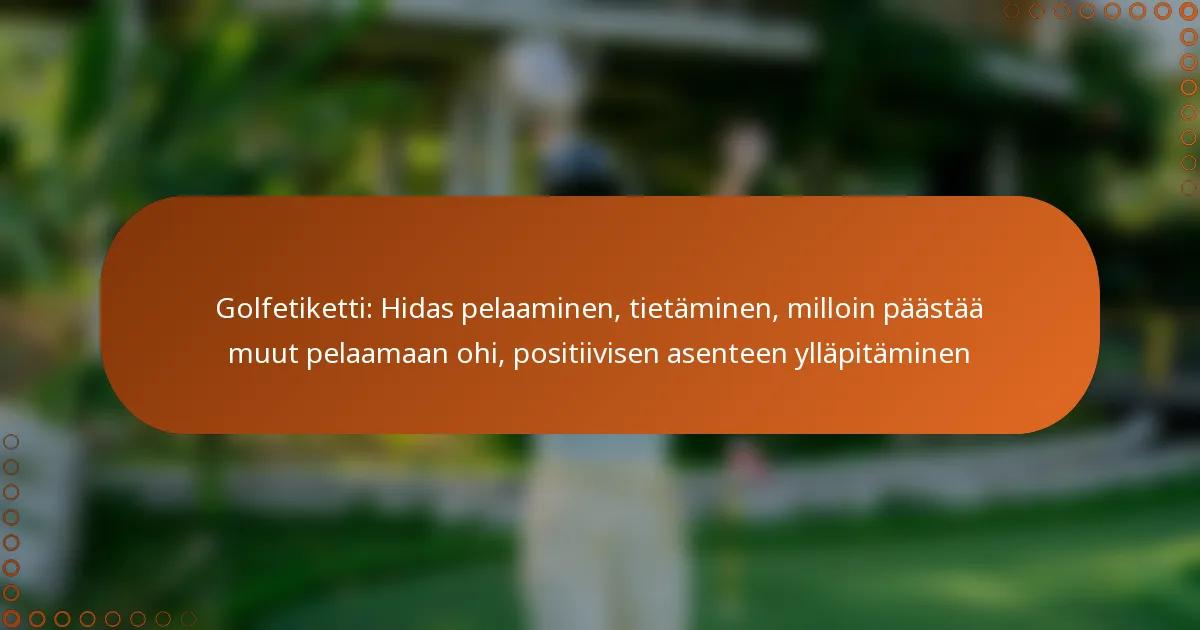 Golfetiketti: Hidas pelaaminen, tietäminen, milloin päästää muut pelaamaan ohi, positiivisen asenteen ylläpitäminen