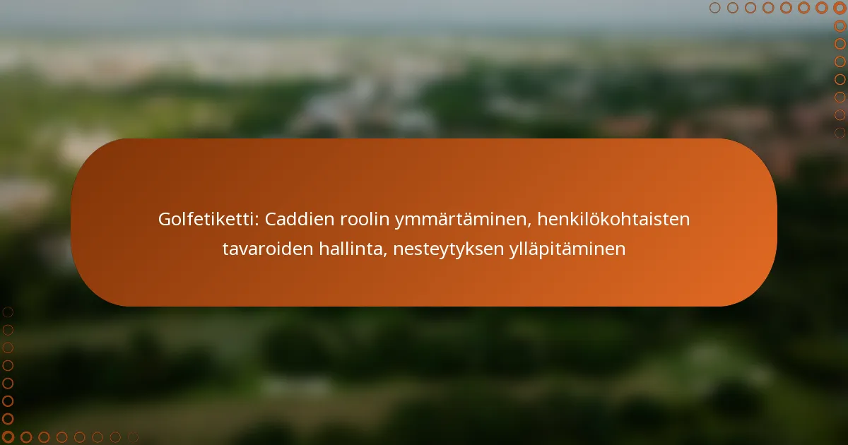 Golfetiketti: Caddien roolin ymmärtäminen, henkilökohtaisten tavaroiden hallinta, nesteytyksen ylläpitäminen