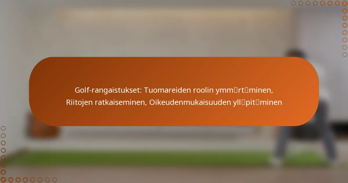 Golfissa tuomarit ovat välttämättömiä sääntöjen valvomiseksi ja reilun pelin ylläpitämiseksi, sillä heidän päätöksensä voivat suuresti vaikuttaa ottelun lopputulokseen. He arvioivat rangaistuksia sääntöjen rikkomisista ja käsittelevät riitoja varmistaen, että urheilun eheys säilyy. Järjestelmällinen riitojen ratkaisemisprosessi antaa pelaajille mahdollisuuden kiistää päätöksiä, edistäen reilua kilpailuympäristöä, jota ohjaavat vakiintuneet säännöt.